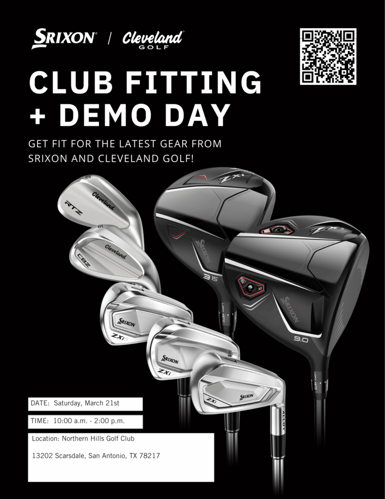 WHERE: Northern Hills Golf Club 13202 Scarsdale, San Antonio, TX 78217 WHEN: 03/21/2026, from 10:00 AM – 2:00 PM WHAT: Get fit for the latest gear from Srixon and Cleveland Golf! Register HERE