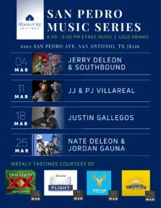 San Pedro Music Series | Free Live Music in San Antonio The Trail doesn’t stop at 18 holes. The San Pedro Music Series brings free live music to San Pedro Driving Range & Par 3 in San Antonio, TX every Wednesday in March from 6:00-9:00 PM. This outdoor music series features a rotating lineup of…